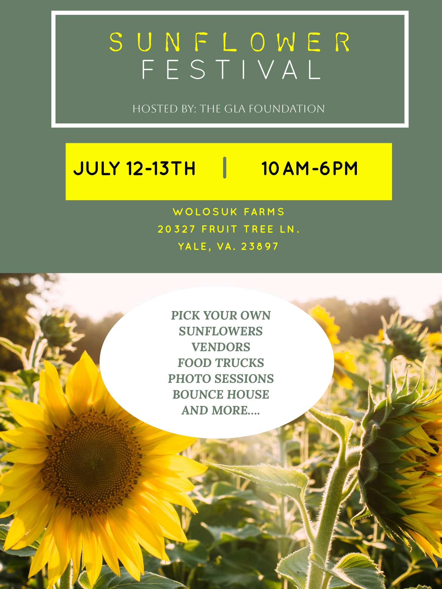 Annual Sunflower Festival. Vendor fair. Bounce houses. Family friends event. Cash bar. Cornhole tournament, and more.